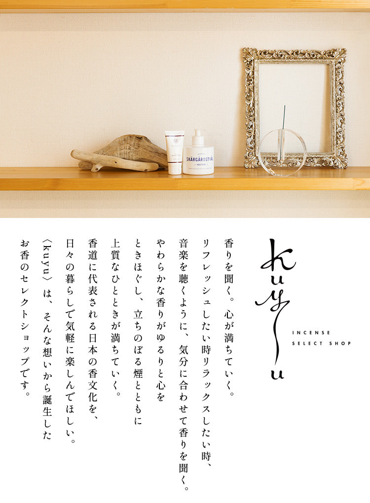 香道に代表される日本の香文化を日々の暮らしで気軽に楽しんでほしい。〈kuyu〉は、そんな想いから誕生したお香のセレクトショップです。