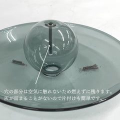 落ちる灰を受け止めるガラスの香立て