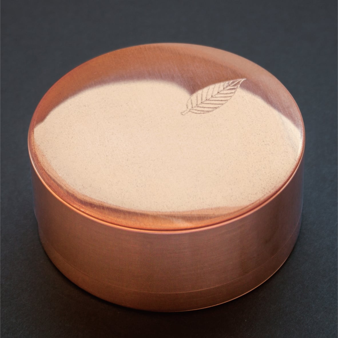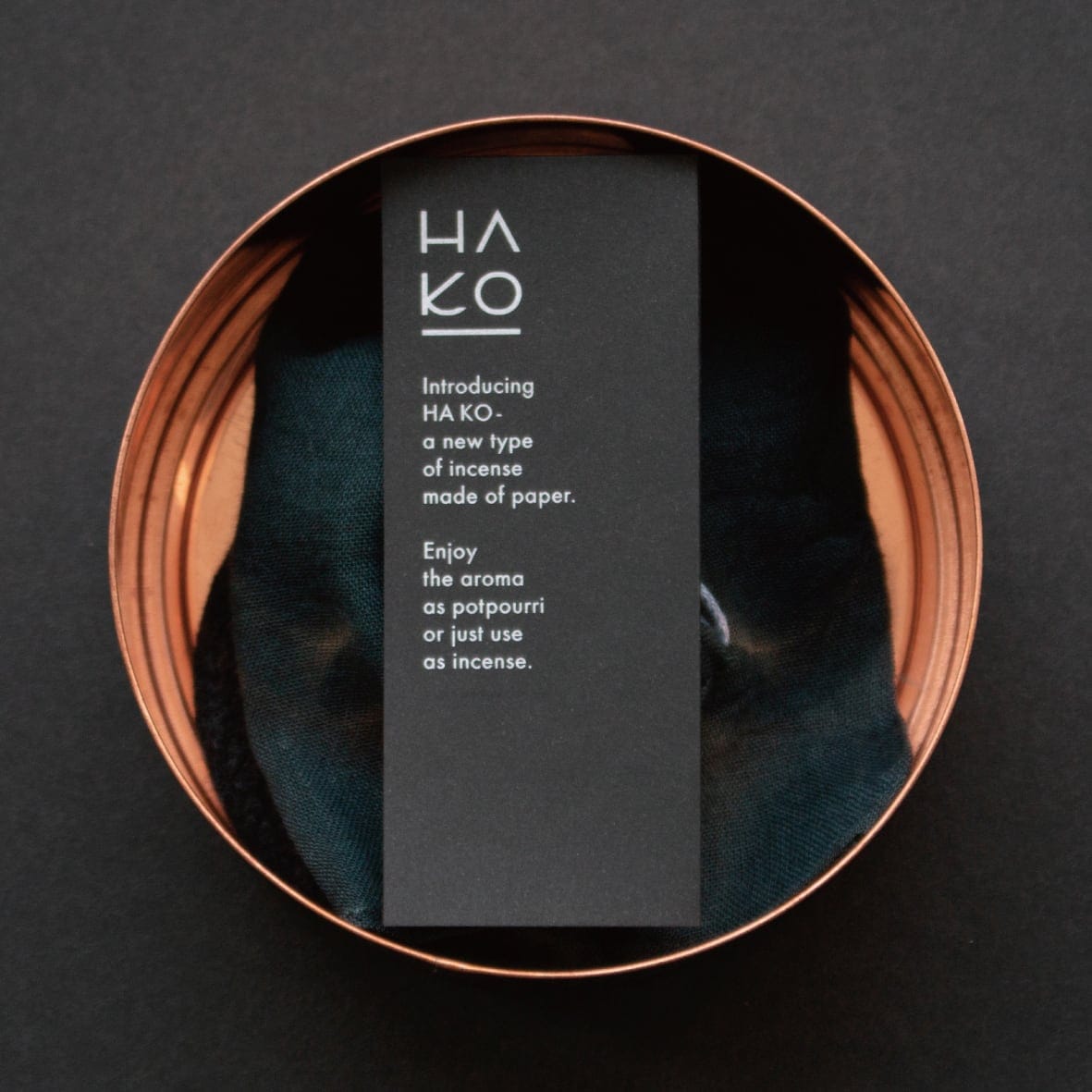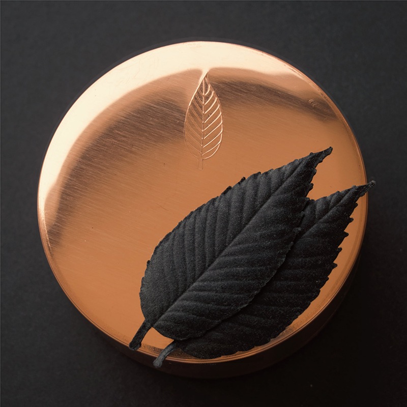 ひとつずつ職人の手でつくられた銅製の缶に入れた特別なセットです。存在感のある美しい佇まいだけでなく、湿度の変化に強く、手で触れる度に味わいが増す逸品です。蓋の裏側でお香を焚くことができるので、香皿が必要なく、特別なギフトに最適です。