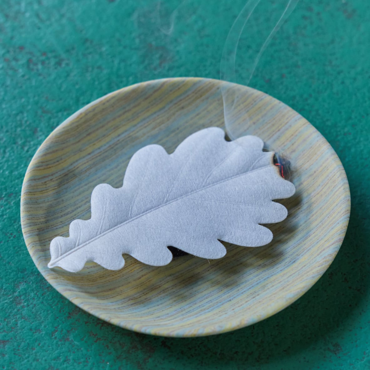 お香と同様に焚いて愉しむことができます。HA KOに火をつけ炎を吹き消したら、煙りを燻らせながら香りが空間全体に行きわたります。(1枚約5~7分間燃焼します。燃焼中は消臭・抗菌効果を発揮します。)