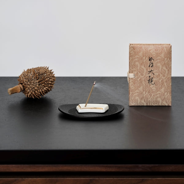 お香を焚く際は、灰を受けるのに十分なサイズの不燃性のお皿等を香立の下に敷いてお使いください。