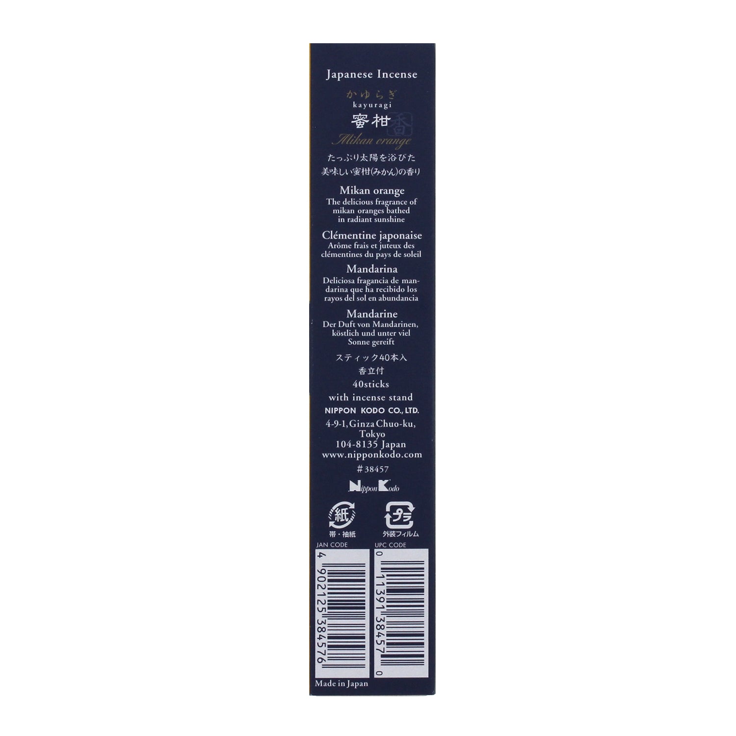 よりフレッシュな香りをお届けするために、かゆらぎ蜜柑のお香はPET素材の袋入りとなっております。