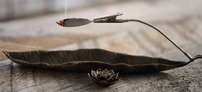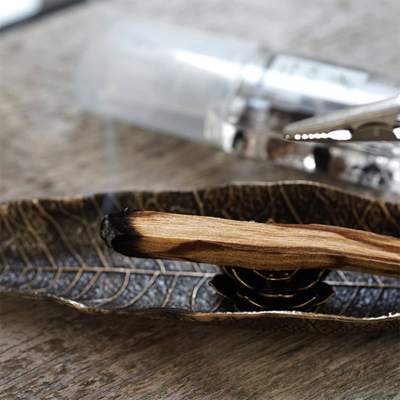 ・クリップにホワイトセージを挟んで火を灯し、炎を消してからトレーにセットしてください。