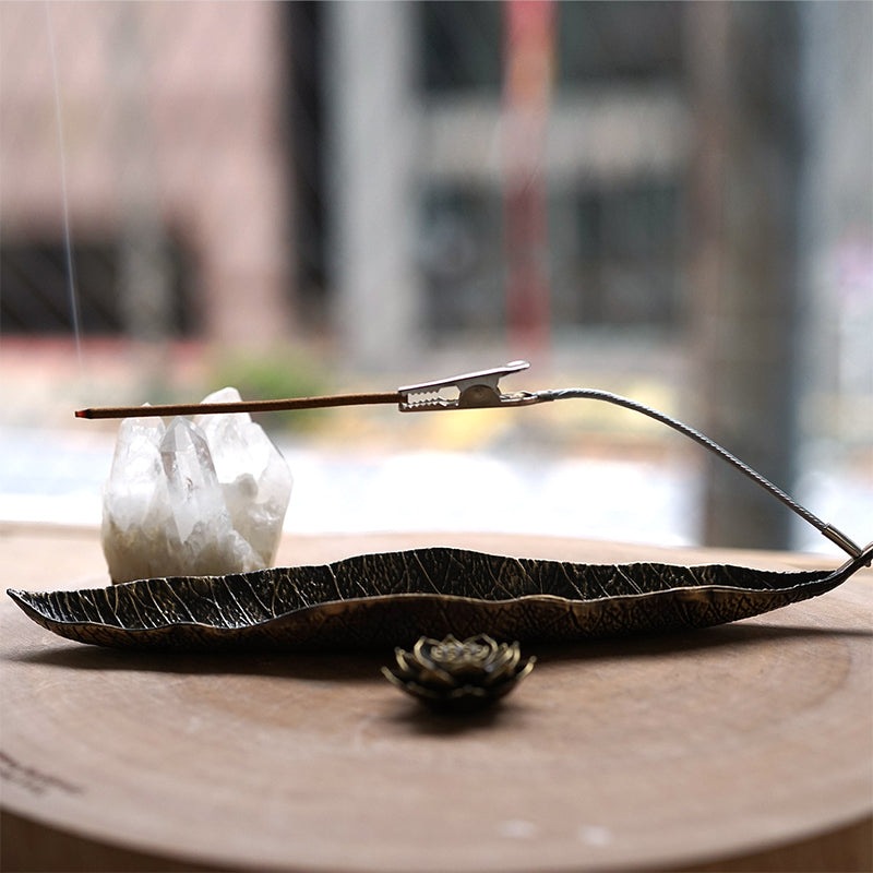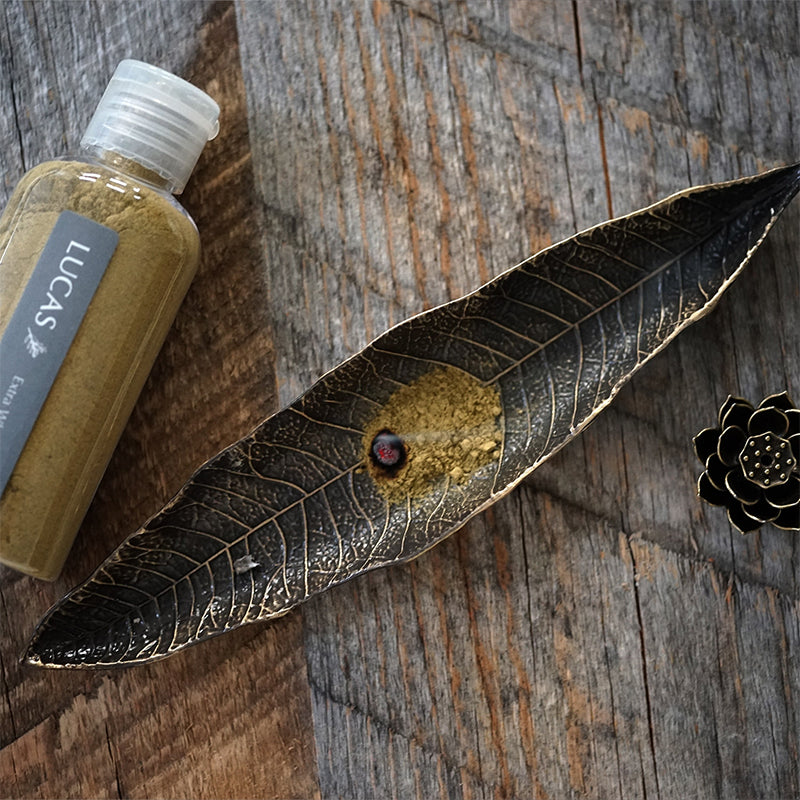 金属製のリーフ(葉)をデザインしたトレーで、ホワイトセージの他にパロサントやお香でのご利用も可能です。