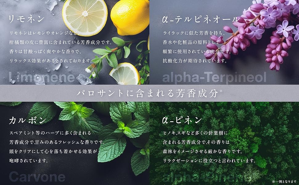 神の力の源、パロサントに含まれる成分の一部をご紹介