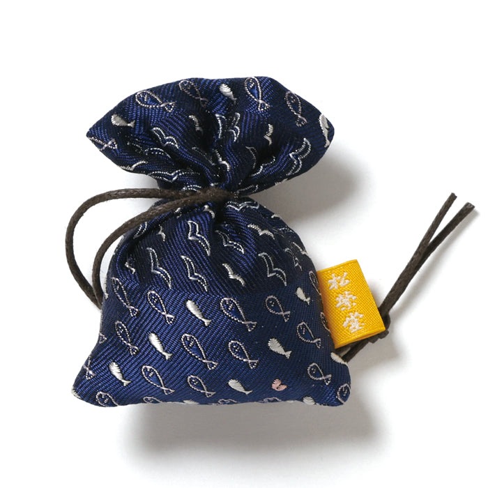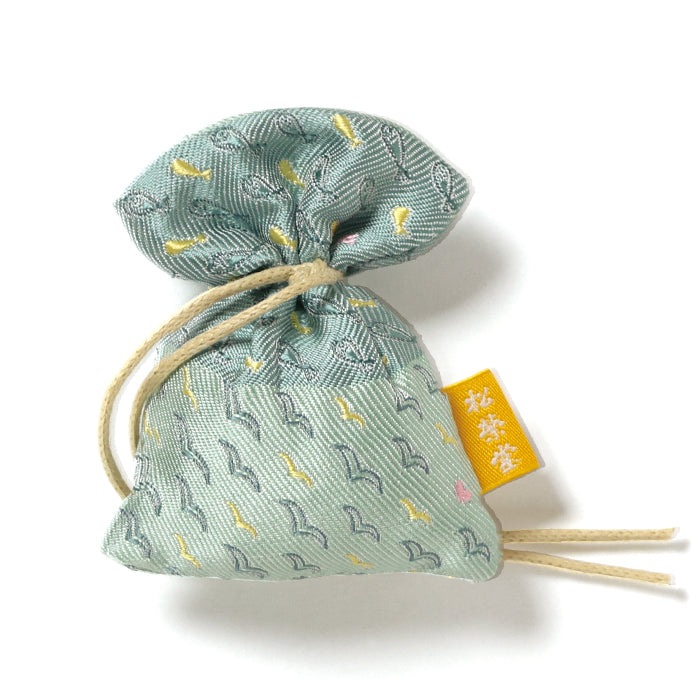 "京都・西陣織りのネクタイ生地を巾着型の匂い袋に仕立てました。