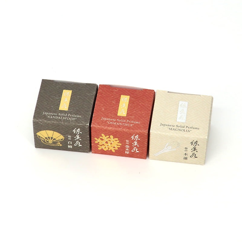 古来より伝わる香原料を忠実に再現し独自の方法で現代的に調合した練り香水です。ミツロウ・スクワラン・ホホバ油など各種オイルを贅沢に配合し保湿力も優れております。