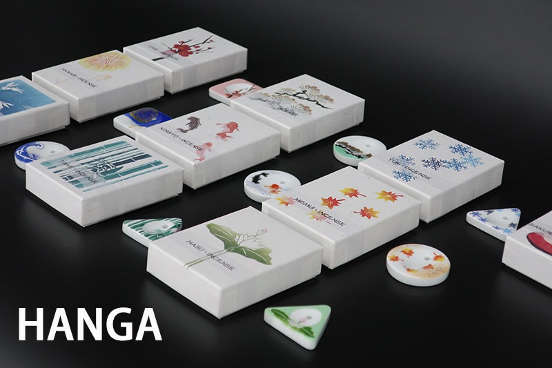 日本の美しい四季を版画風のパッケージと香りで表現しました。「HANGA インセンス 桜うさぎ」は、桜の花をイメージした華やかな香りです。ベルガモット、ムスク等を調合しました。お揃いの柄の香立てもご一緒にどうぞ。