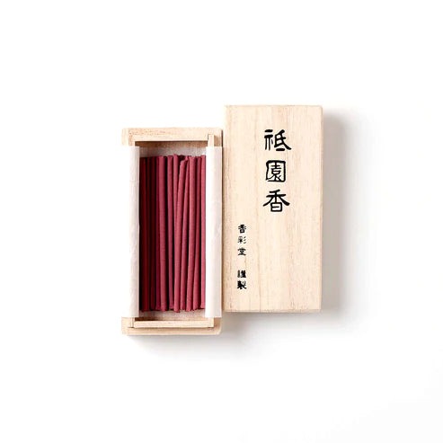 「祇園の華」今様色にはんなりとすれ違い香る、祇園の華をイメージした桃色のお香です。数種の花たちが醸し出す、情熱的な香り。保存に適した桐箱入りです。